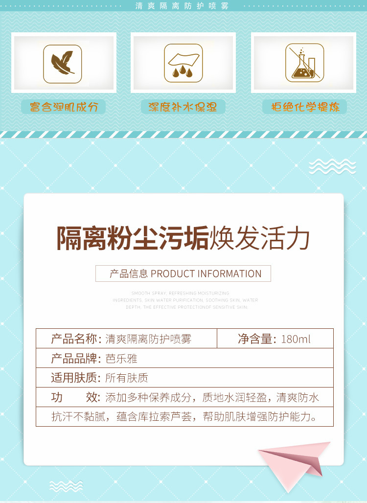 芭乐雅新款正品网红同款清爽防护喷雾护肤隔离保湿素颜批发180ml