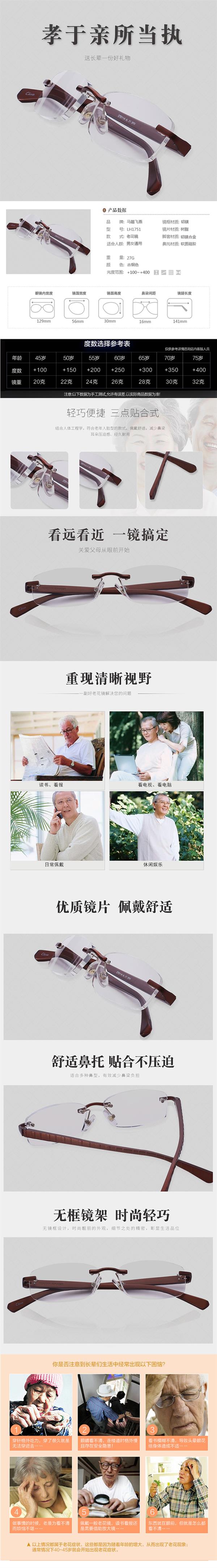 马踏飞燕金丝钛老花镜 远看近看一副搞定 远近两用