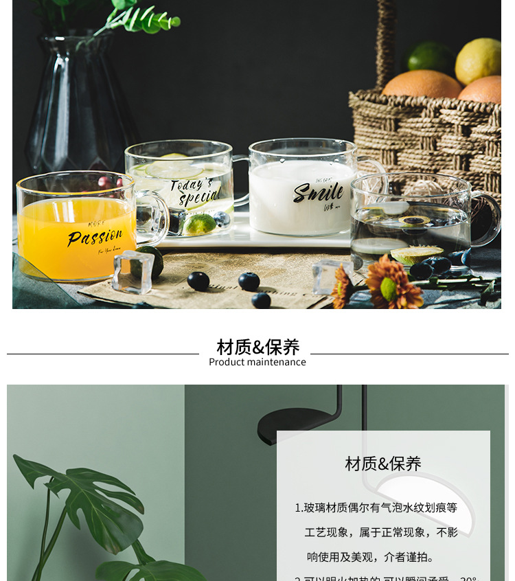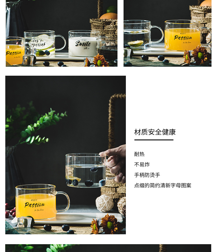 创意字母耐高温玻璃杯子大号带把马克杯办公室茶杯甜品杯早餐杯