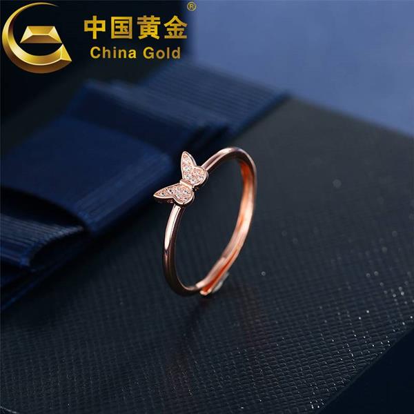 中国黄金S925银镶锆蝴蝶戒指ZGHJ210368